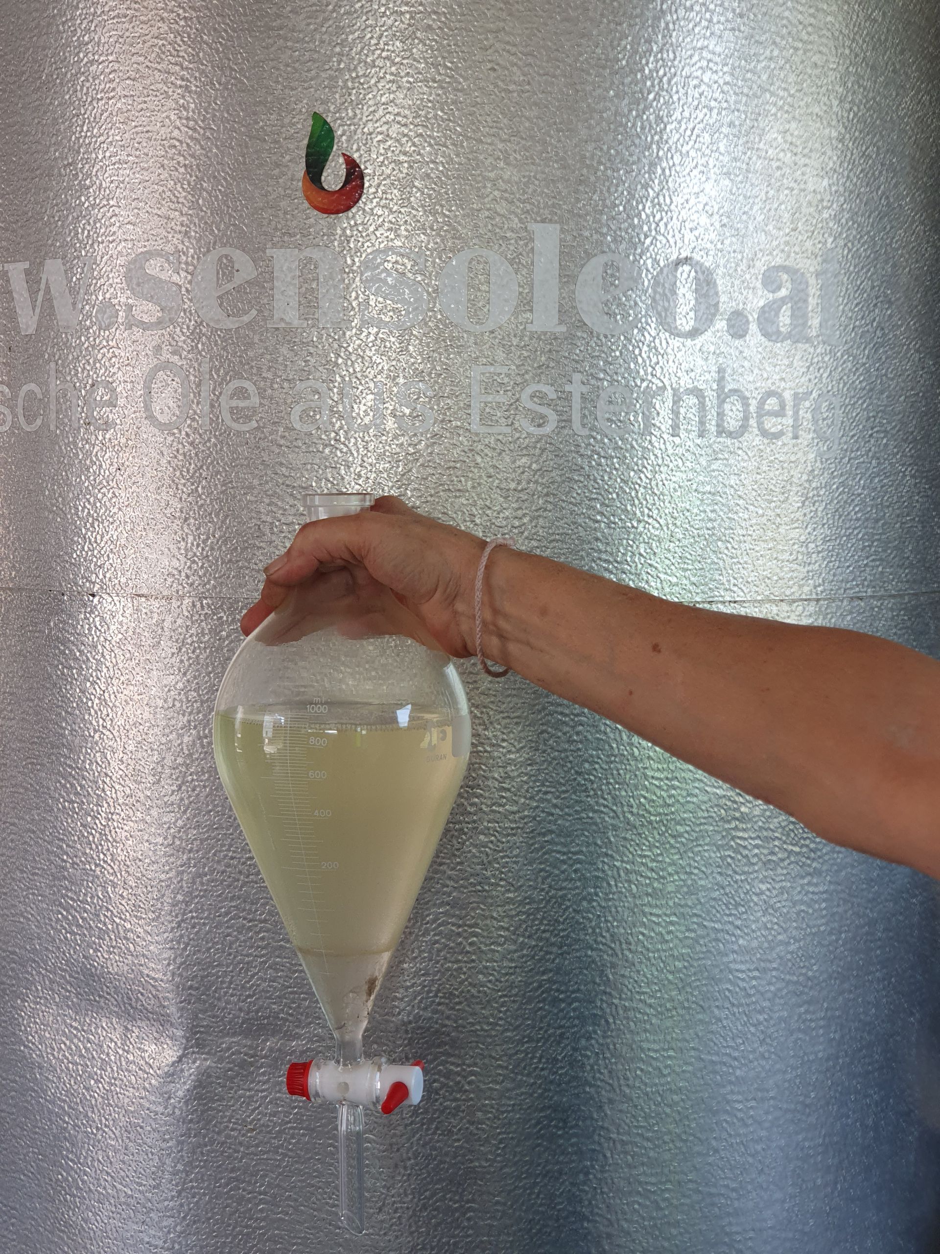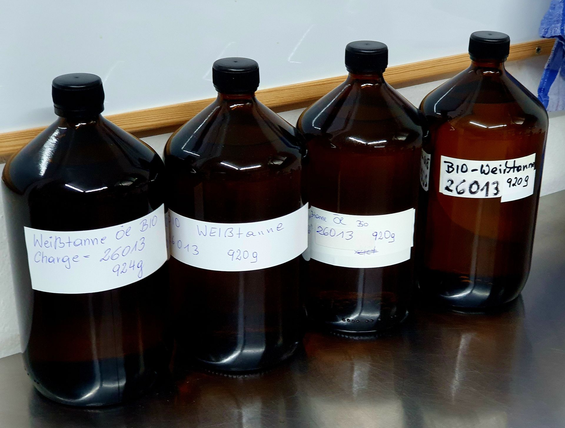 Bild oben: Ätherisches Öl, gewonnen aus etwa 1.600 kg Pflanzenmaterial.